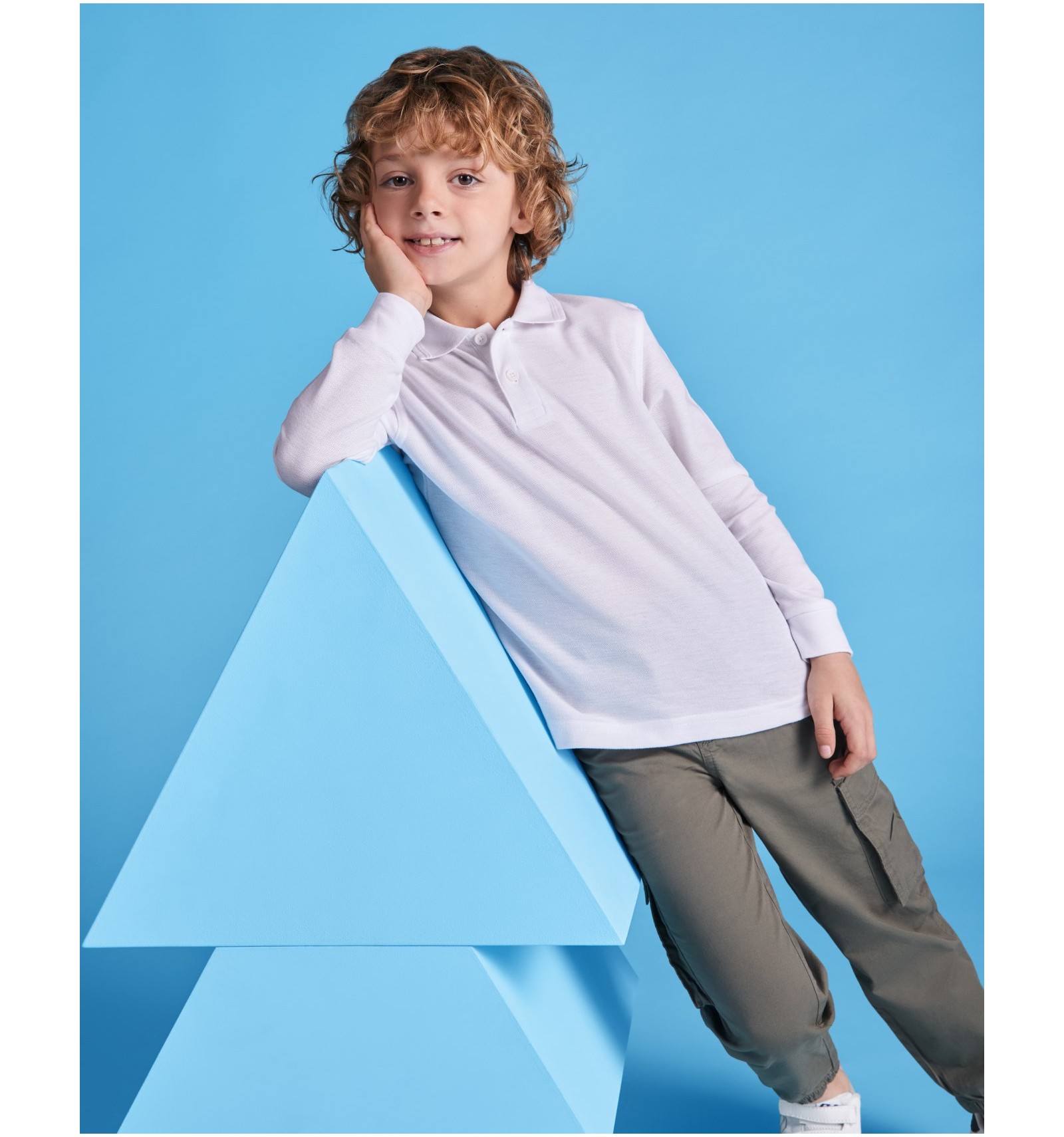 Tricou polo cu mânecă lungă, guler și manșete canelate 1x1 cu elastan și bandă întărită pentru acoperirea cusăturii la guler. Fantă cu 3 nasturi. Șlițuri laterale.