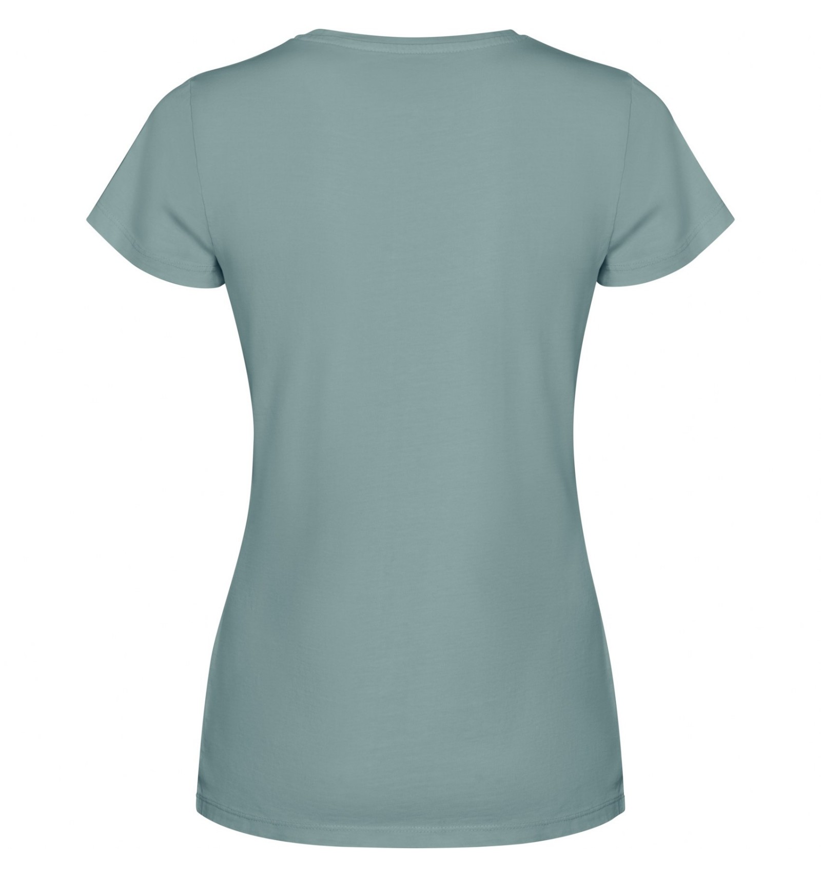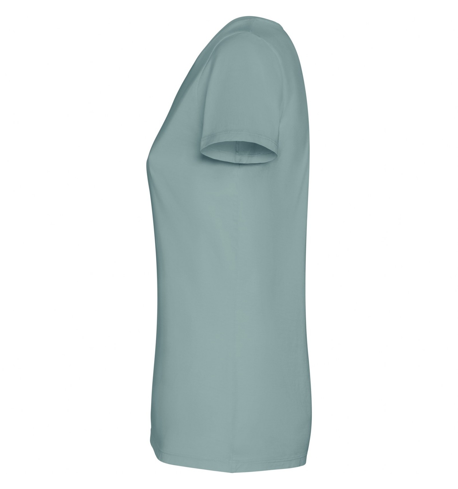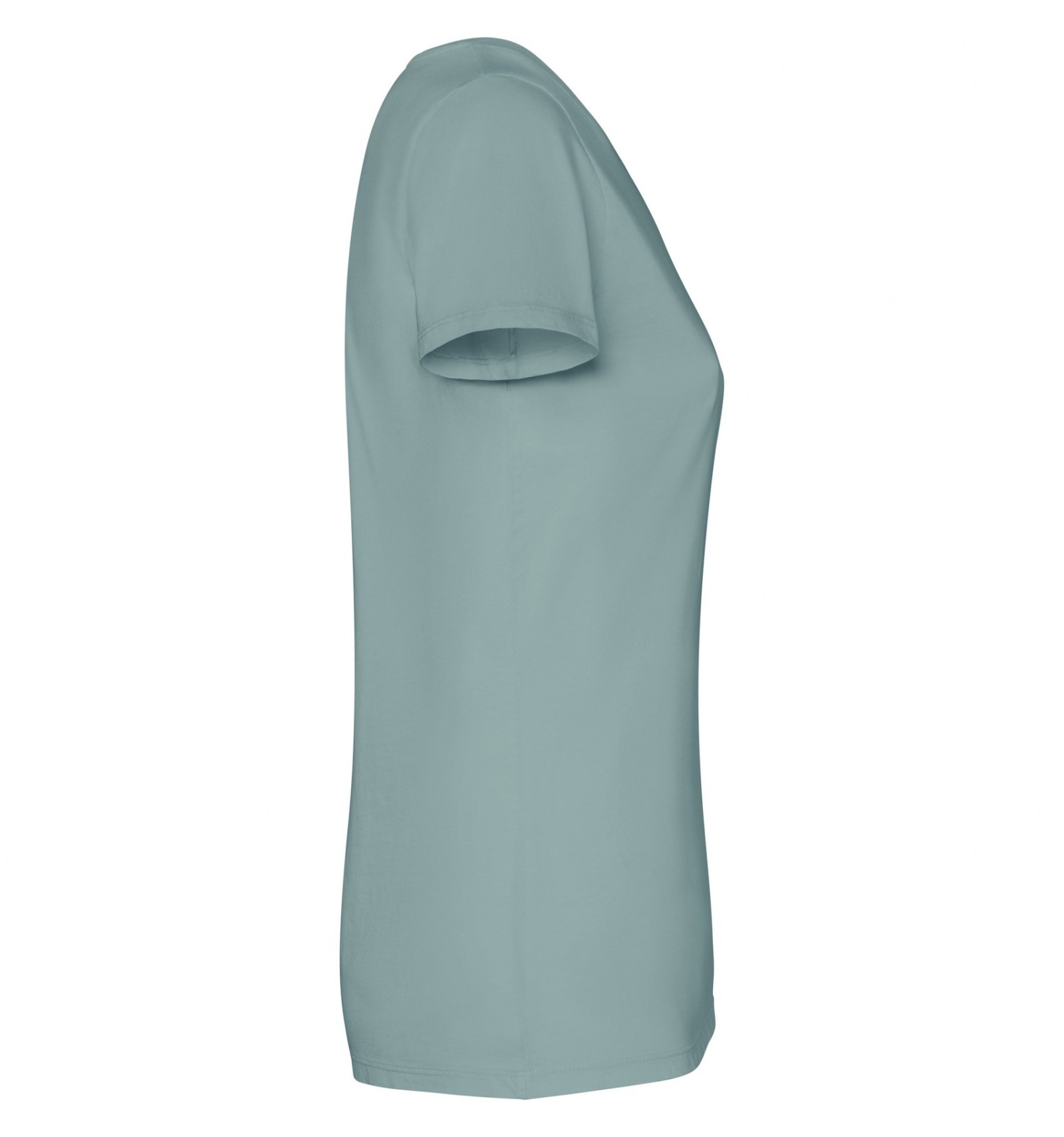 Tricou cu mânecă scurtă pentru femei. Bumbac pieptănat cu efect decolorat. Guler rotund cu nervuri 1x1.