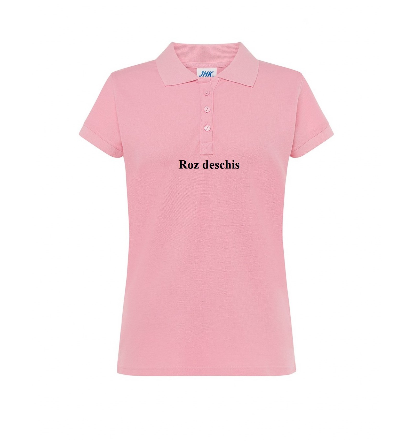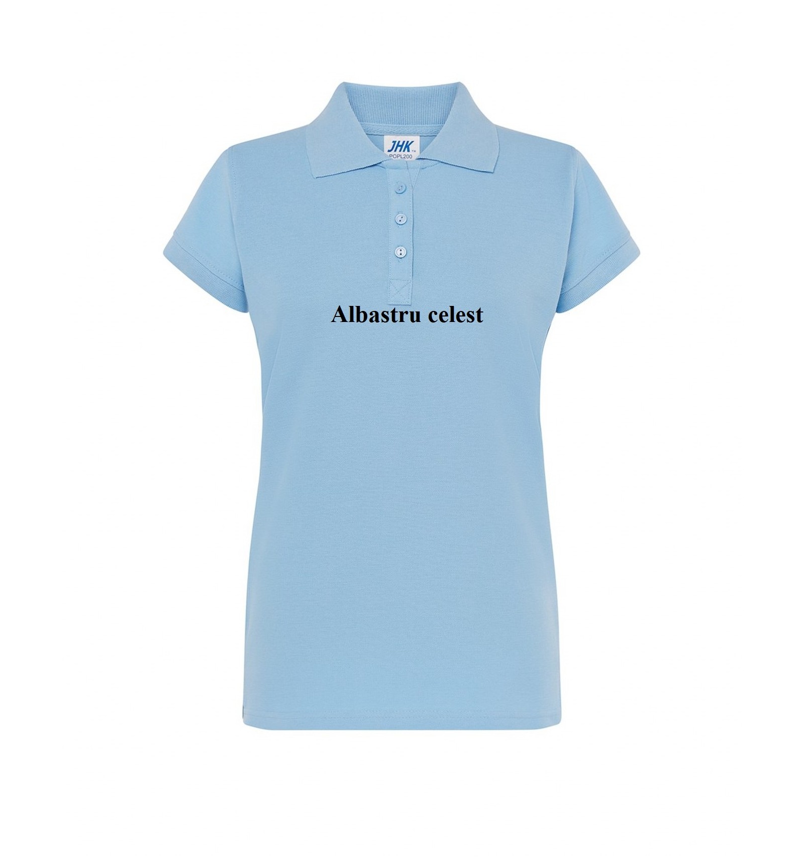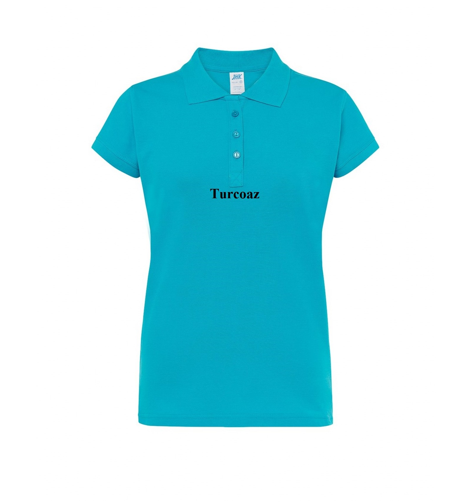 Tricou polo din bumbac piqué pentru femei, cu mânecă scurtă, 100% bumbac și cu etichetă detașabilă.