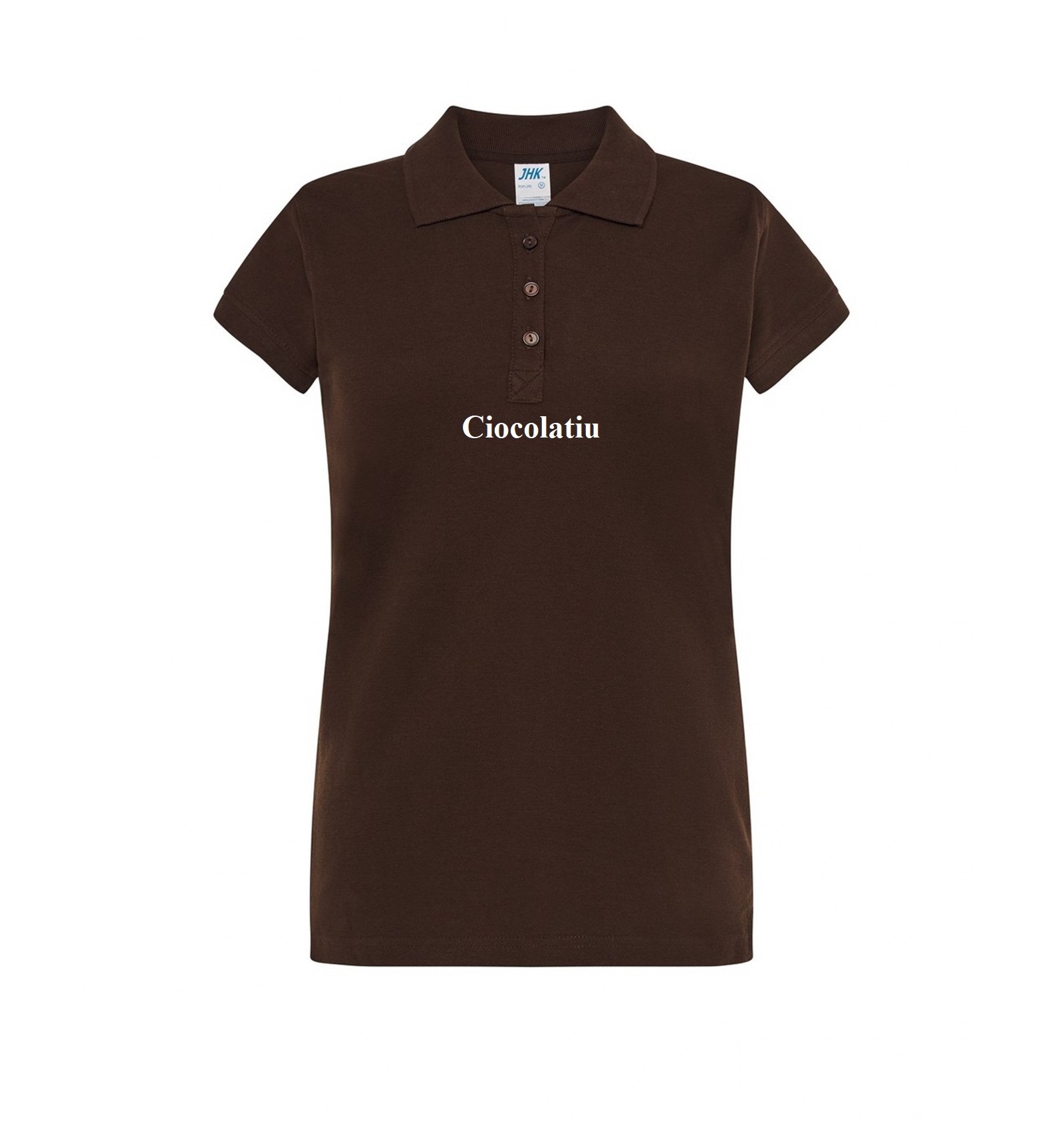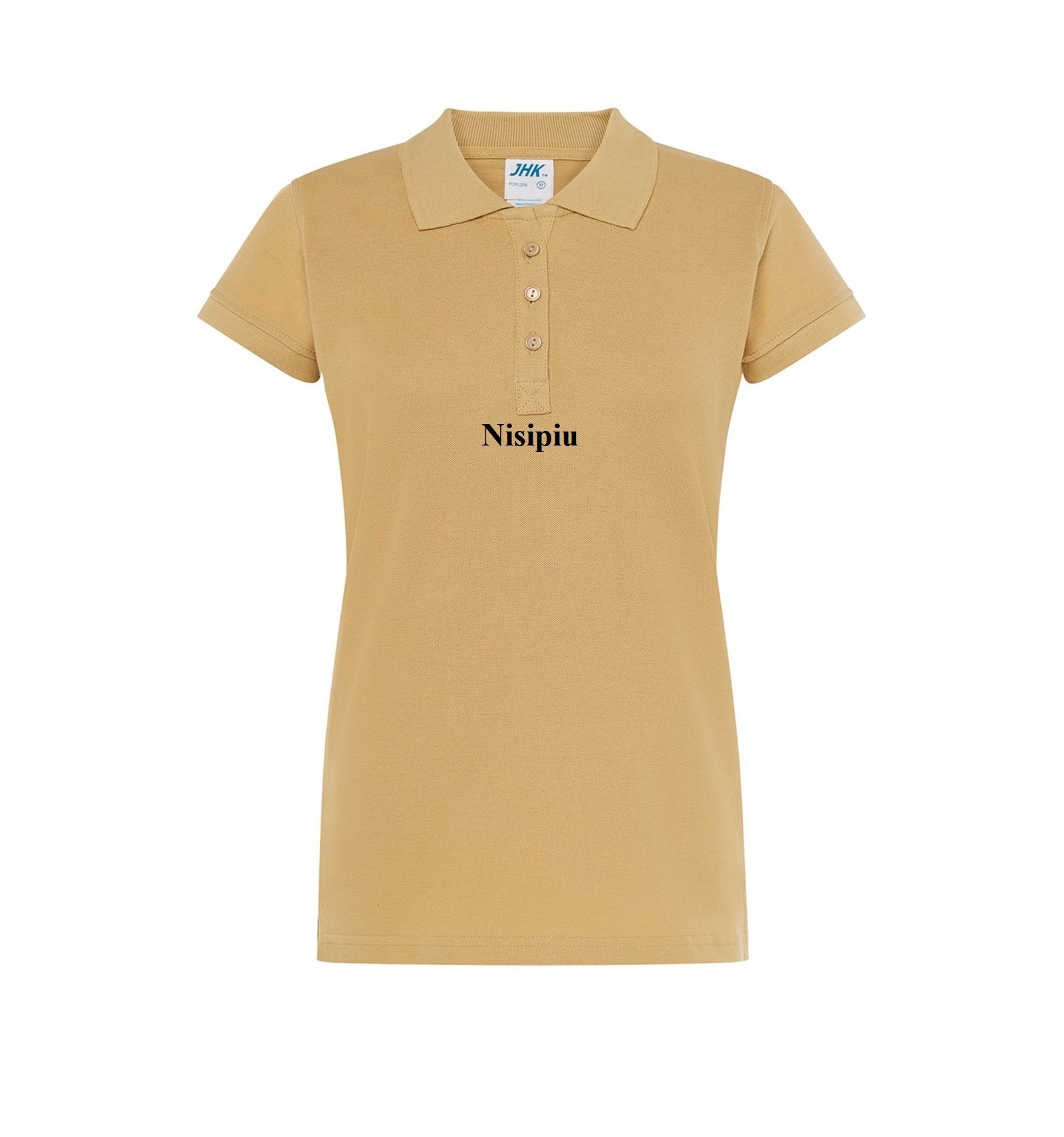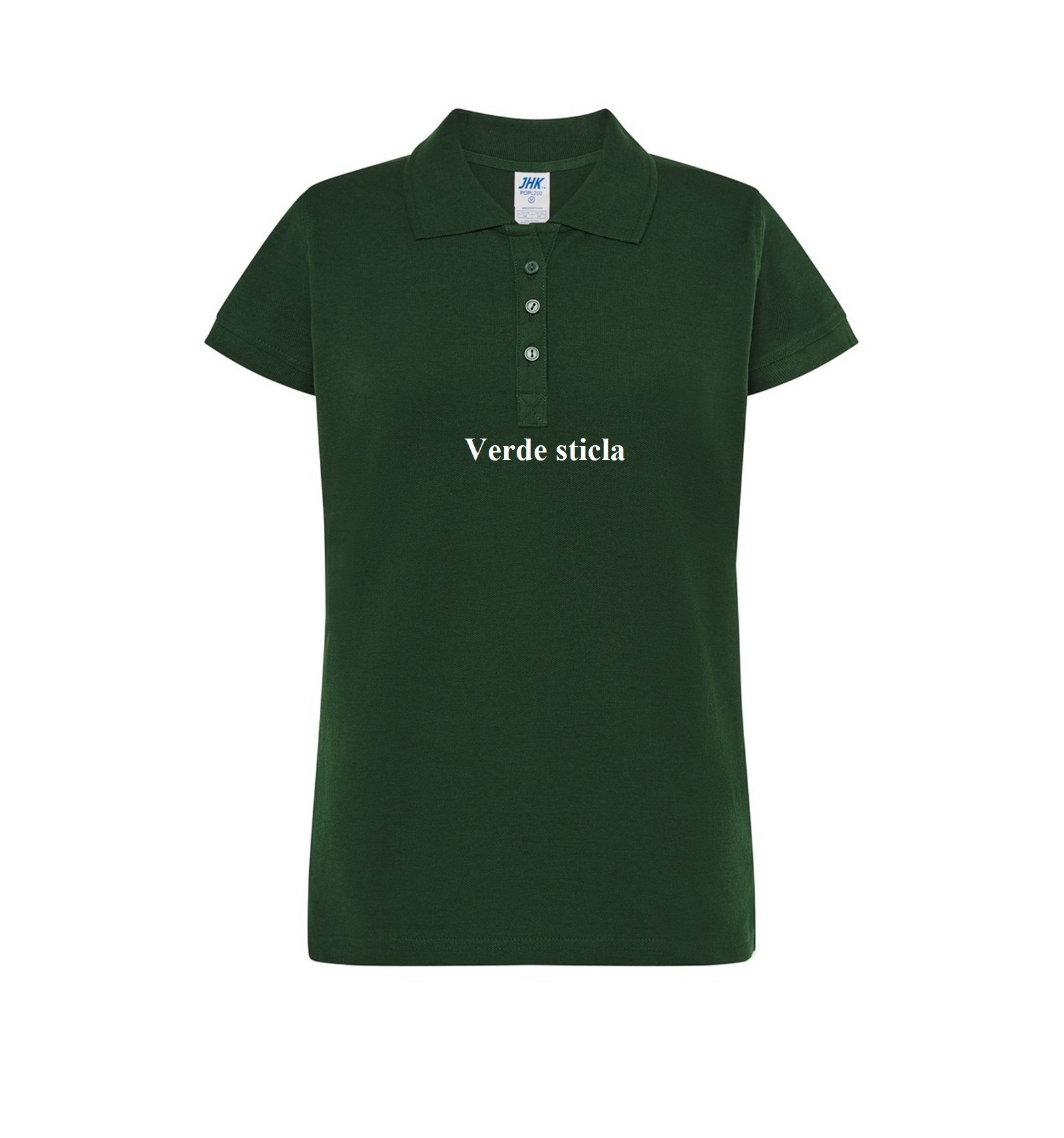 Tricou polo din bumbac piqué pentru femei, cu mânecă scurtă, 100% bumbac și cu etichetă detașabilă.