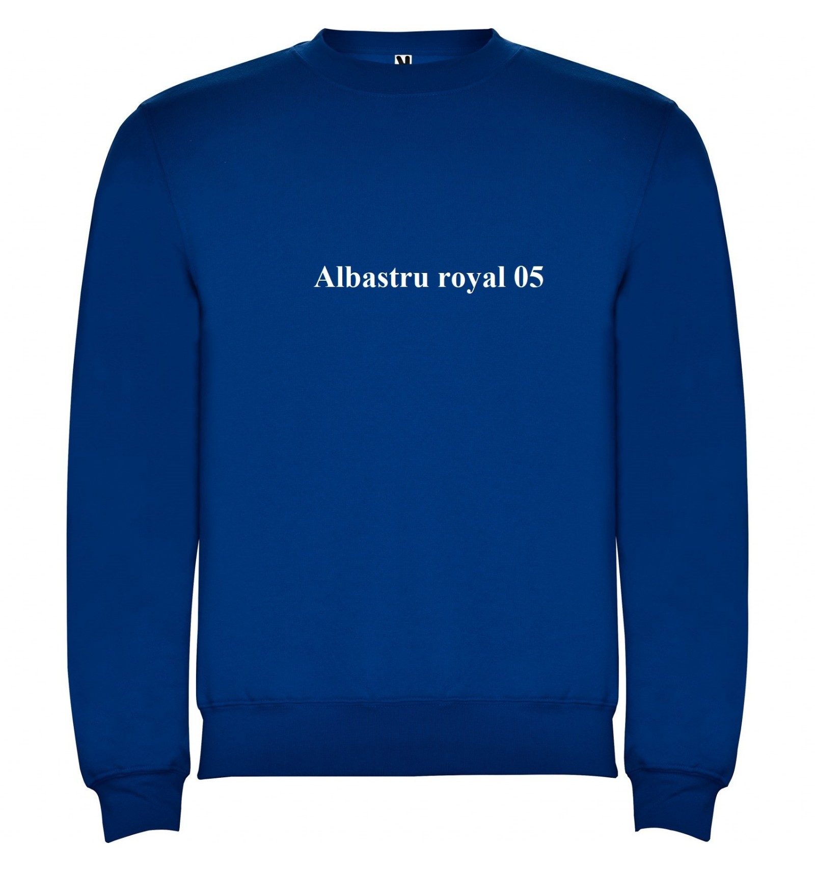Hanorac cu guler, talie și manșete canelate 1x1 cu elastan. Bandă întărită pentru acoperirea cusăturii la guler.