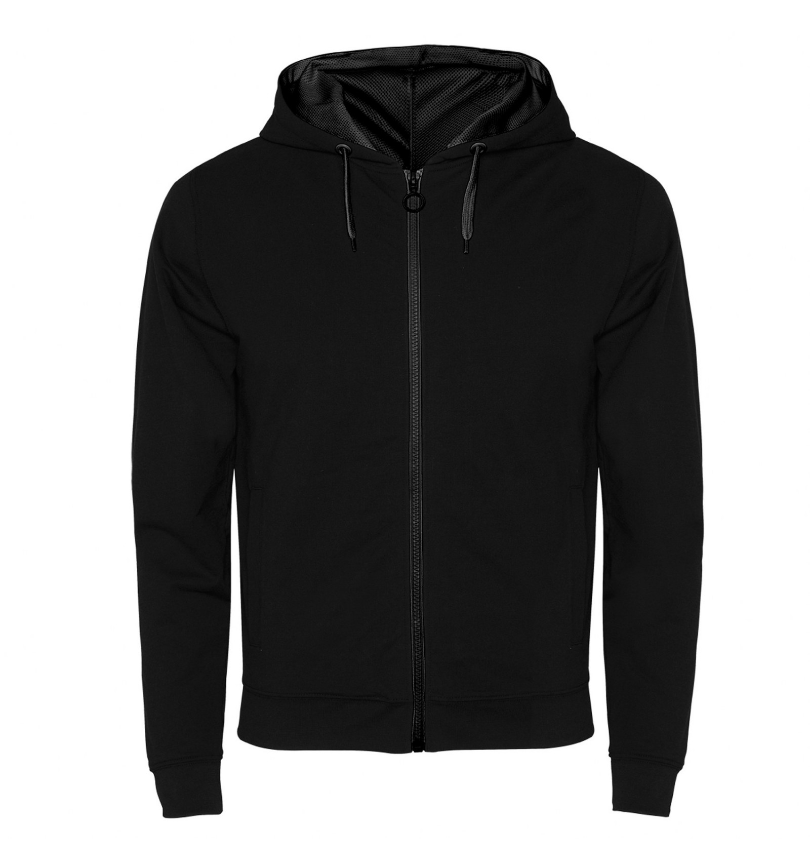 Talie și mânecă cu manșete canelate 1x1. Două buzunare în față cu tiv lat. Bandă întărită pentru acoperirea cusăturilor la gât.
