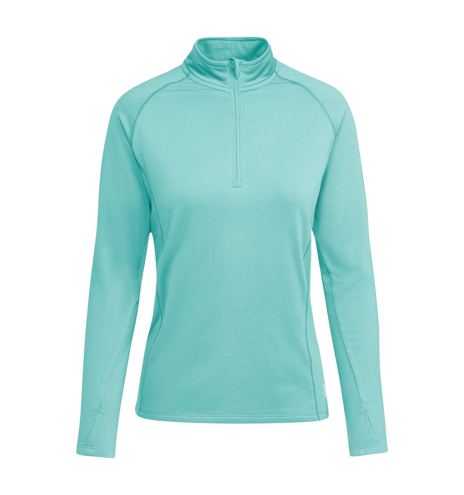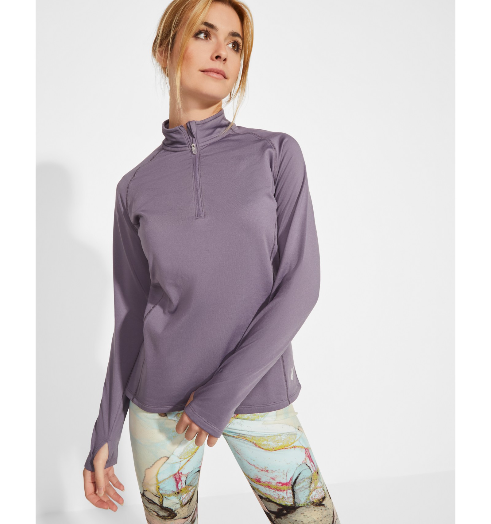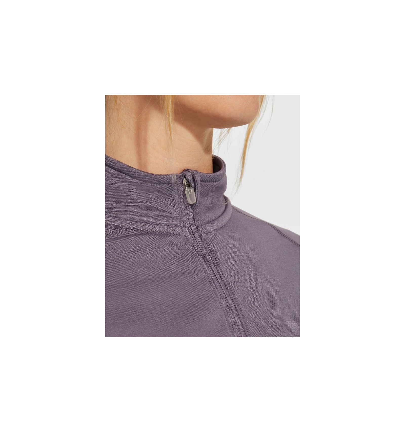 Hanorac tehnic raglan cu mâneci lungi pentru femei. Tricot cu căptușeală de pluș. Cusături acoperite întărite la guler. Semi fermoar reversibil cu detalii. Manșete cu gaură pentru degetul mare. Cusături overlock la mânecile raglan și la părțile laterale. Logo Roly cu vizibilitate ridicată pe partea laterală stânga.