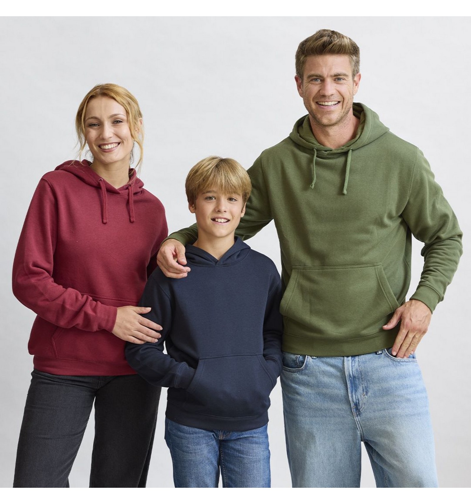 Confecționat dintr-un amestec de bumbac și poliester, din fleece periat de 280 g/m², plăcut la atingere și călduros.