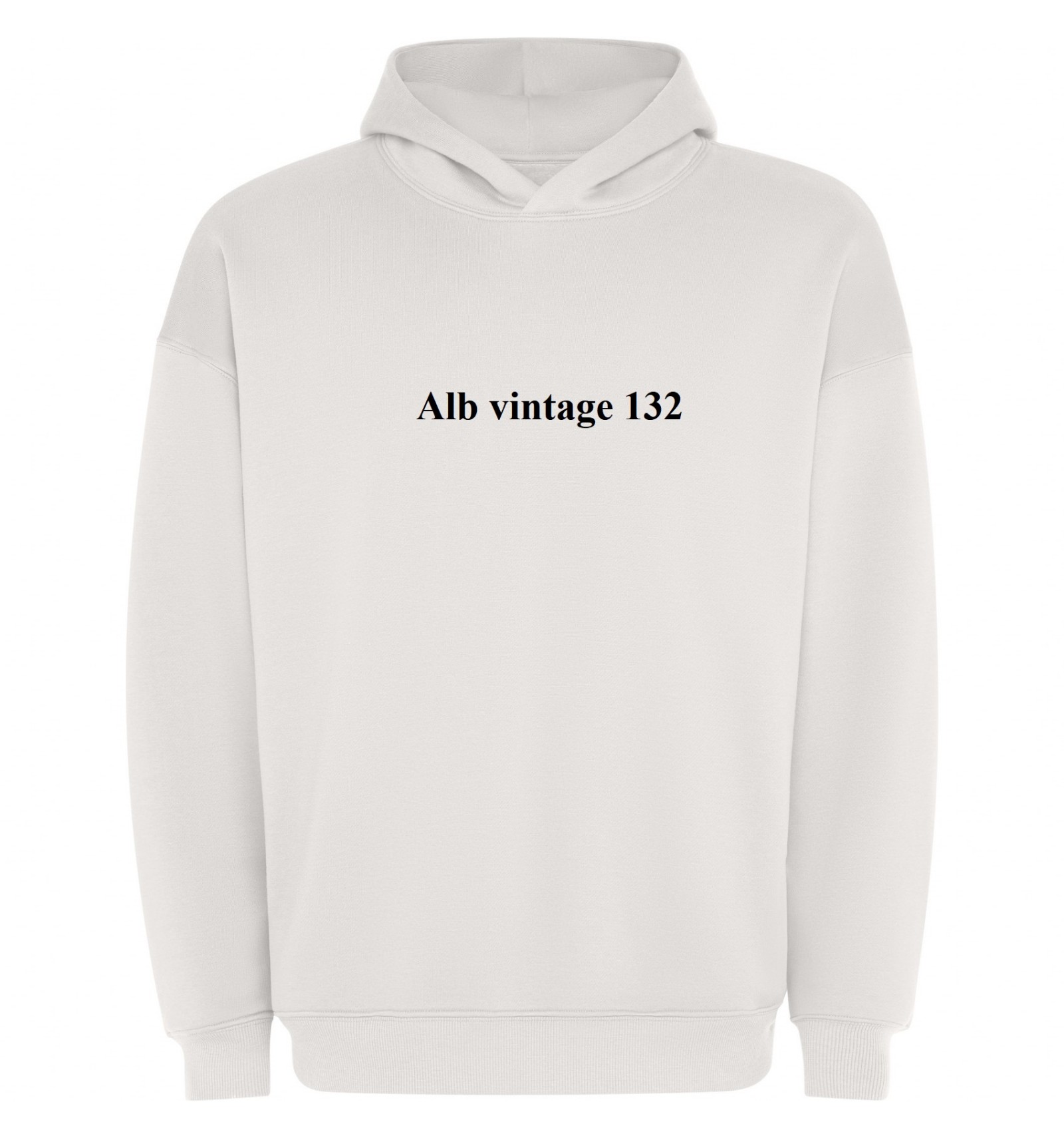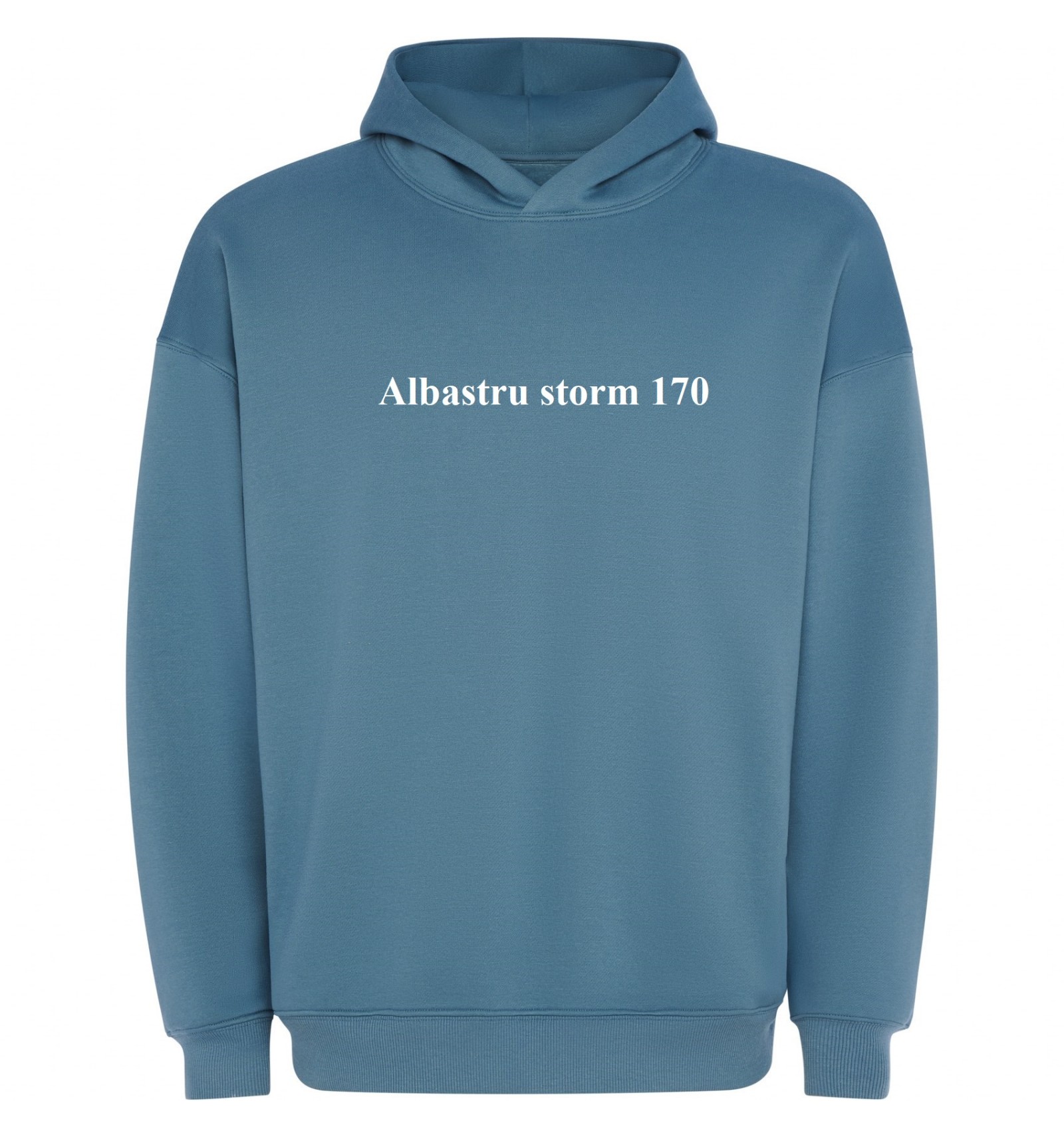 Hanorac unisex oversize, cu glugă căptușită din același material. Guler întărit cu bandă.