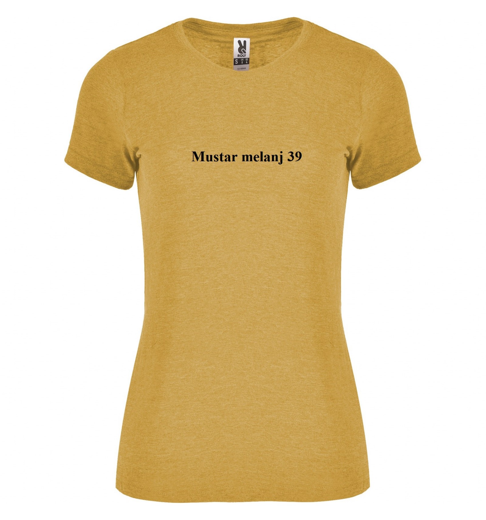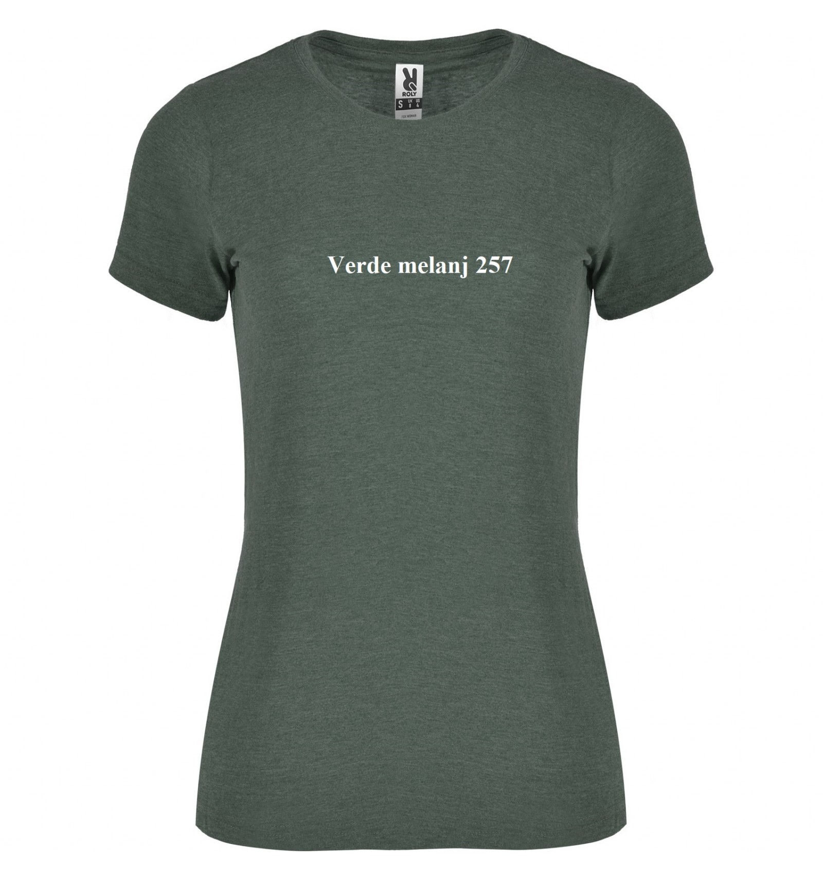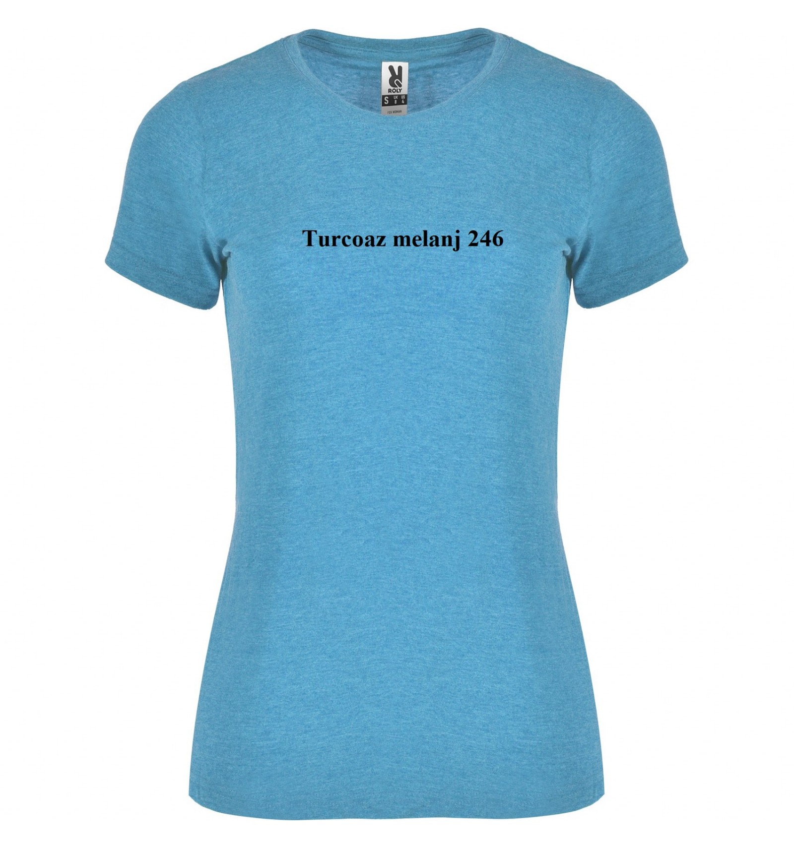 Tricou de damă cu mânecă scurtă, în culori melanj. Guler rotund în punct canalé 1x1 cu bandă întărită pentru acoperirea cusăturilor la interior.