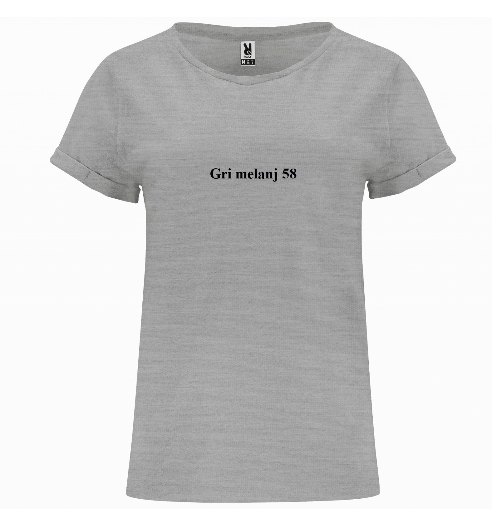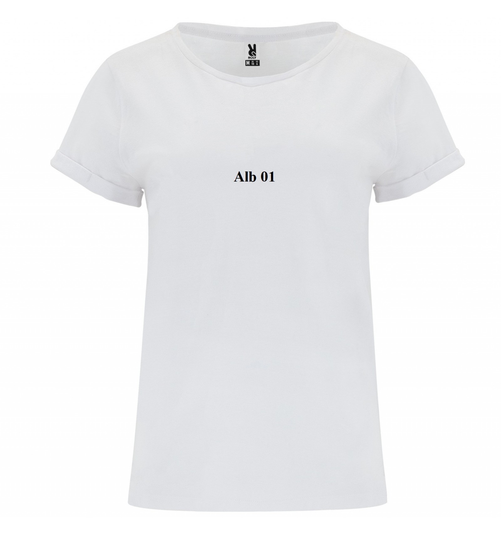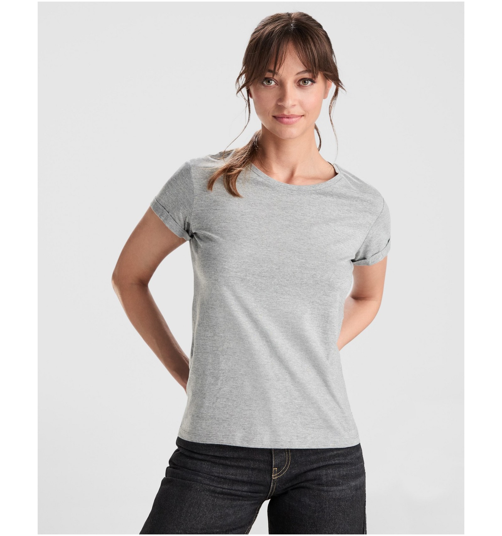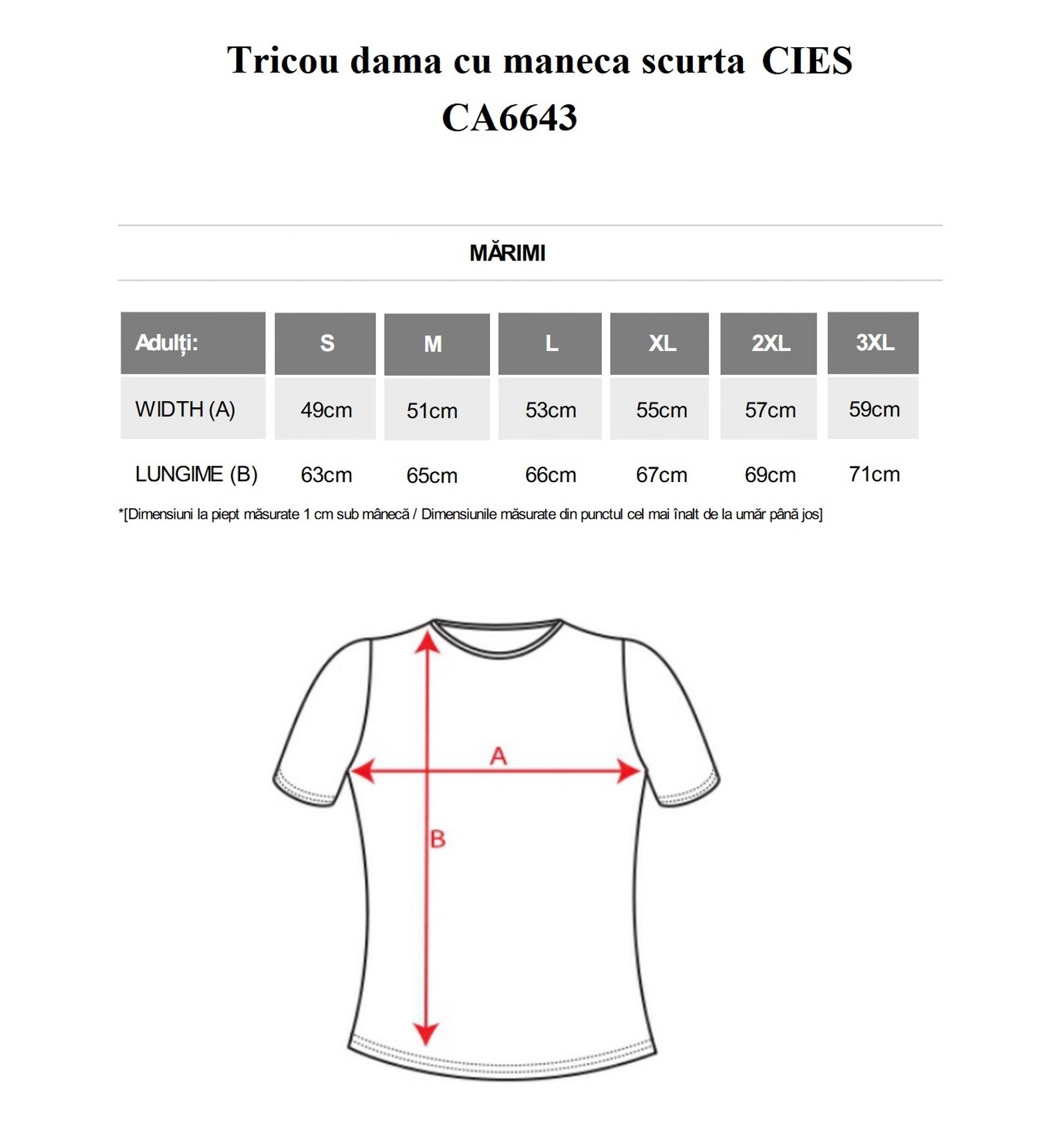 Tricou de damă cu mânecă scurtă. Guler la baza gâtului din același material și bandă pentru acoperirea cusăturilor la interior.