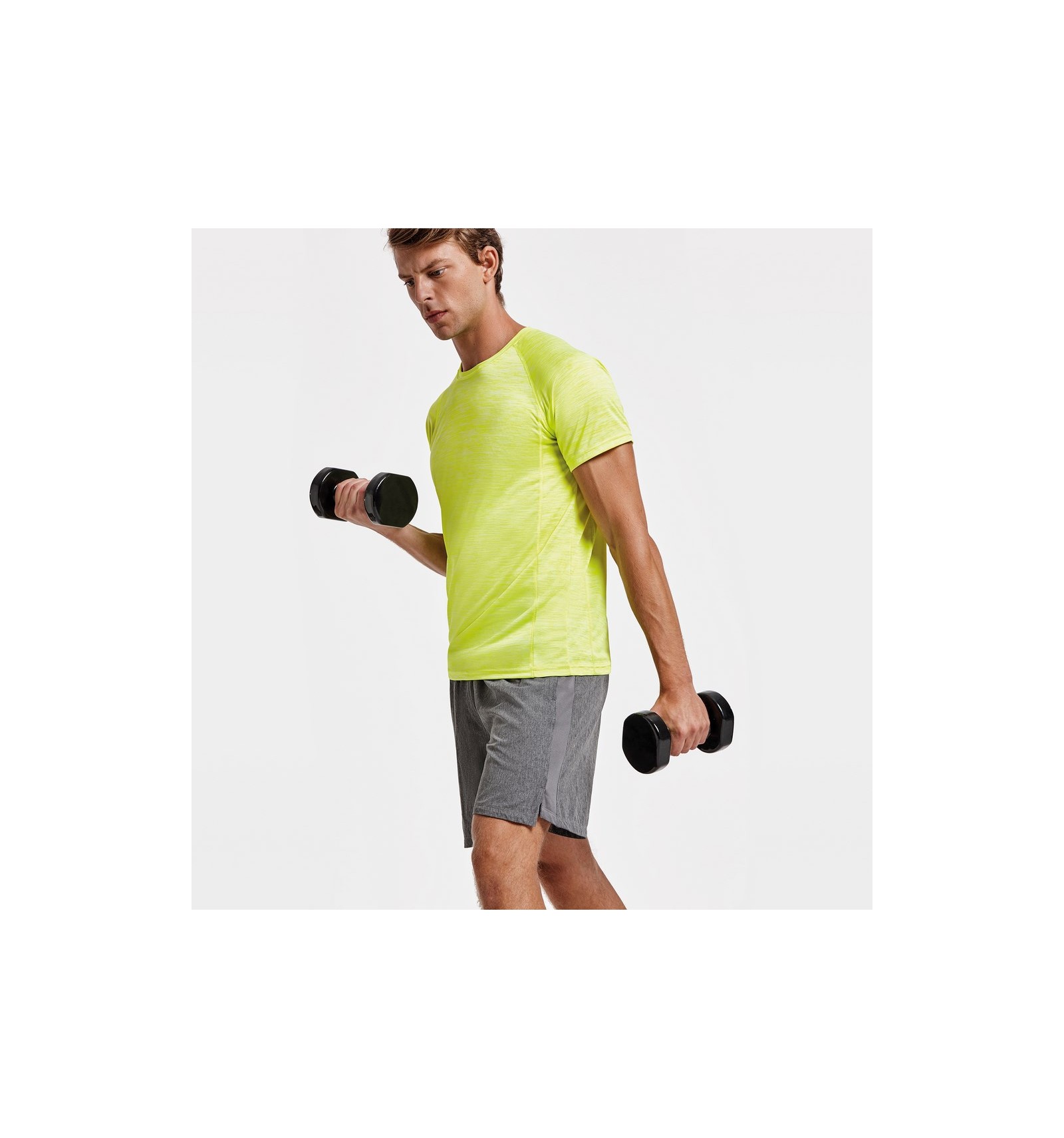 Bermudă multisport confecționată din două tipuri de material. Betelie elastică în talie cu șnur interior încrucișat în contrast de culoare. Banda laterală și partea din interior din material respirabil. Două buzunare laterale. Șlițuri laterale asimetrice.