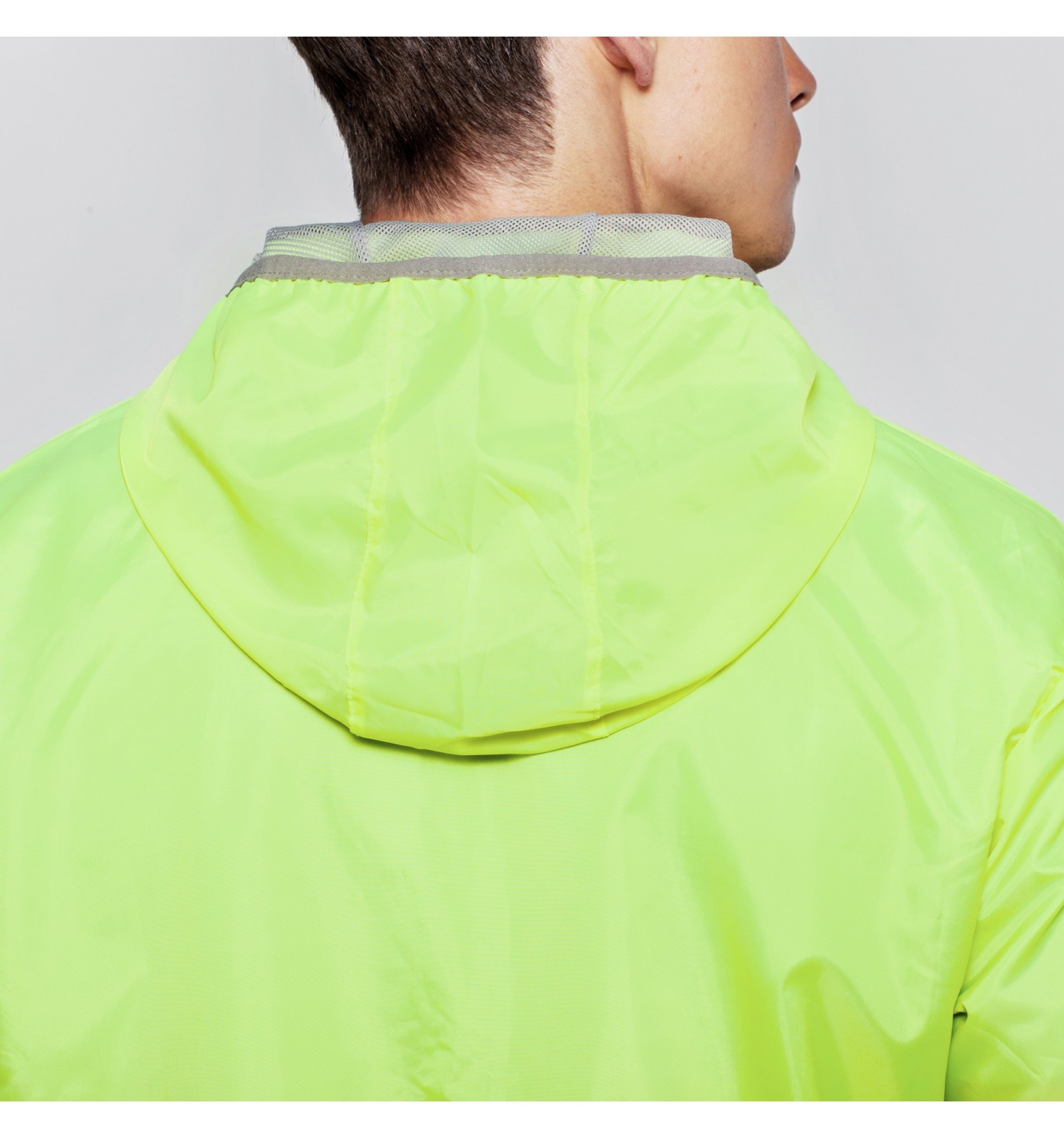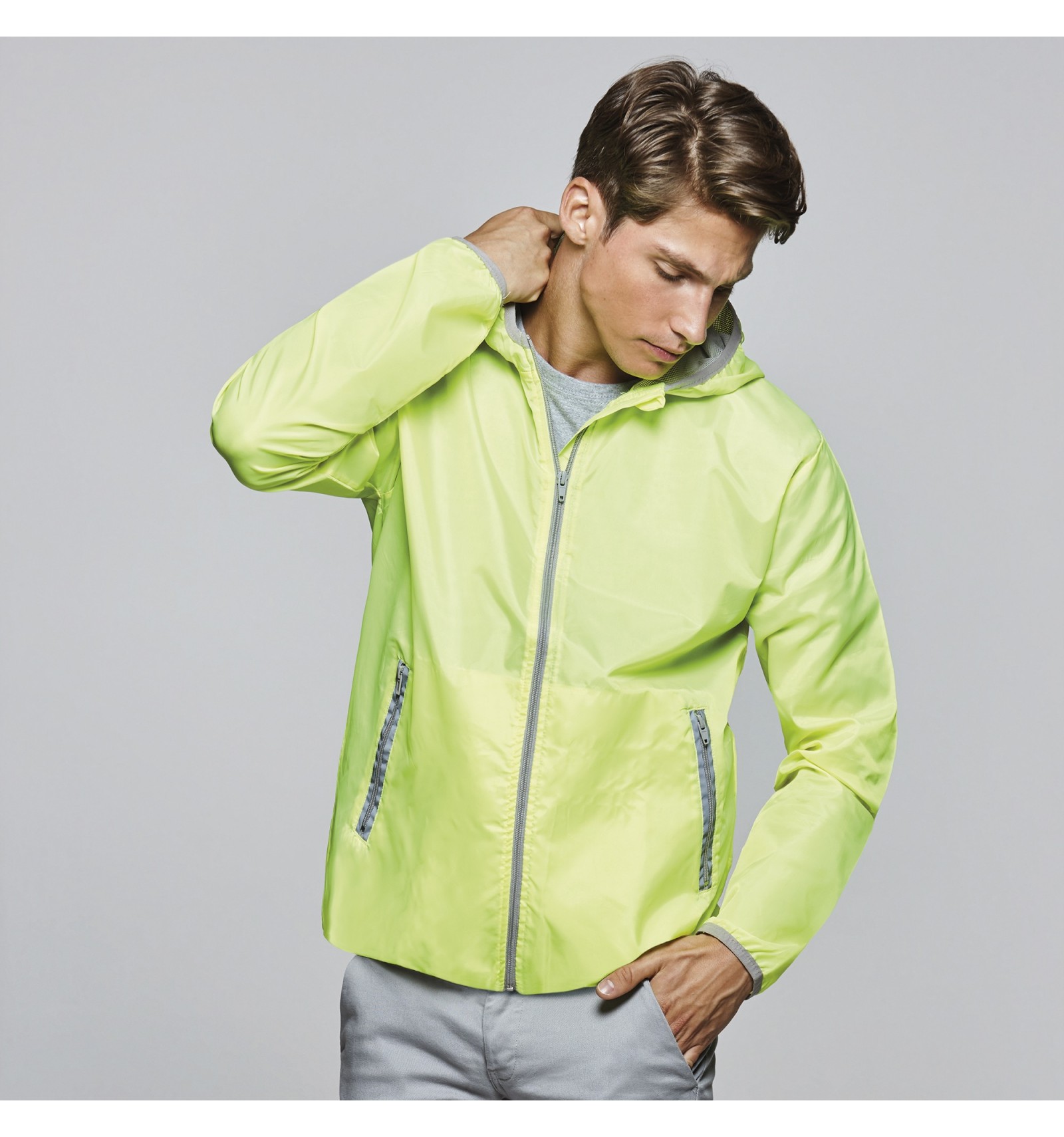 3.- Buzunar tip marsupiu la spate pentru a depozita pelerina, cu sistem de închidere tip arici.