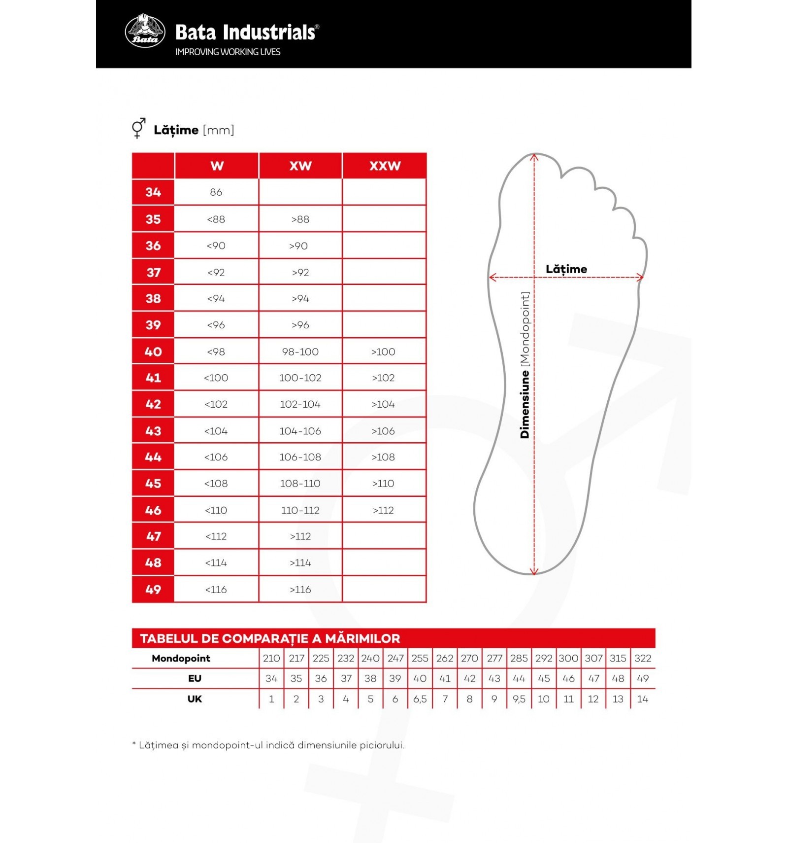 >Lățime XW (vezi tabelul de mărimi)