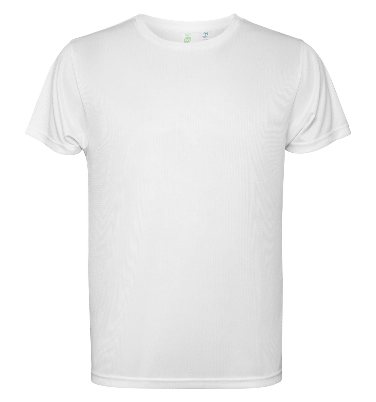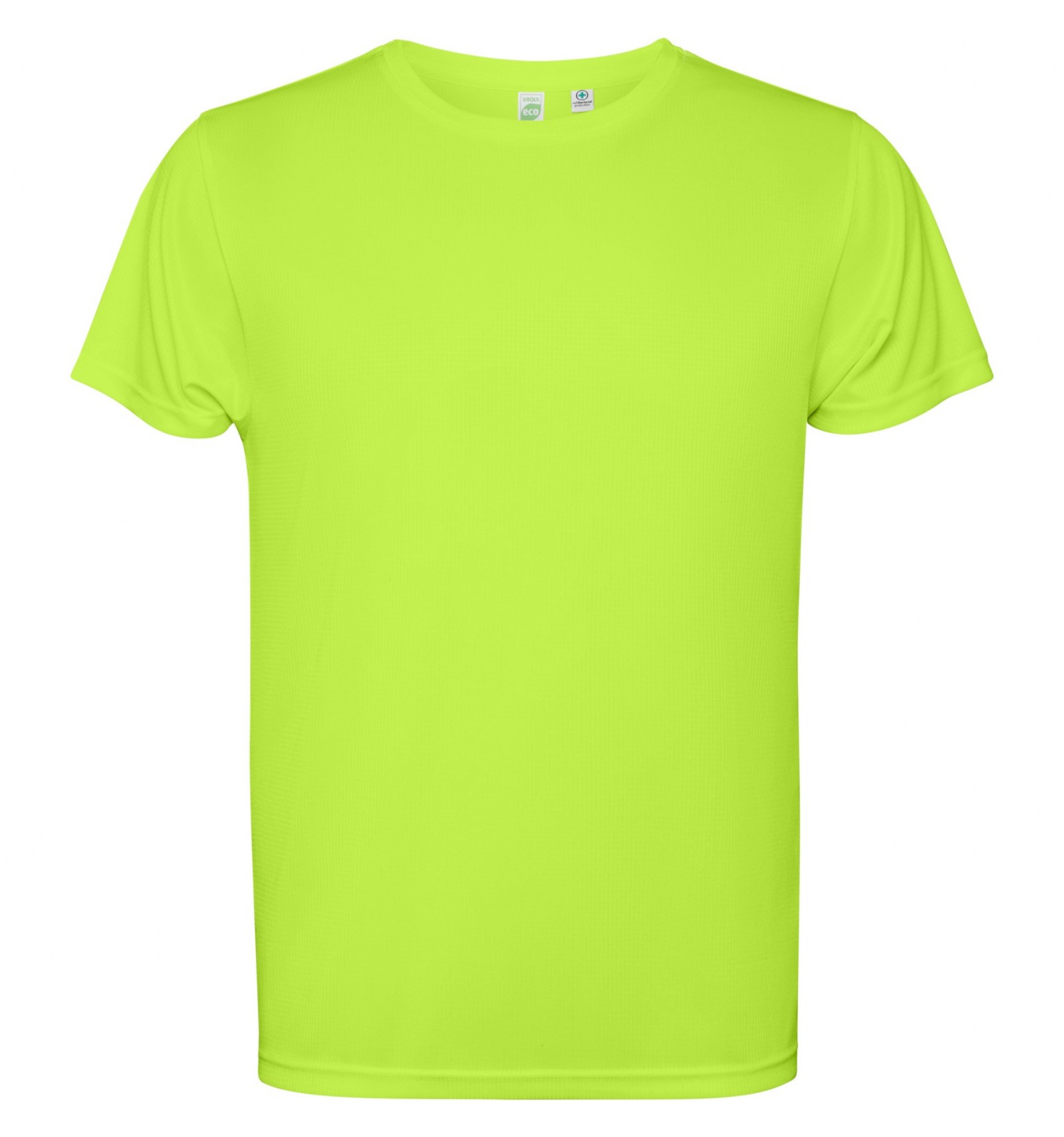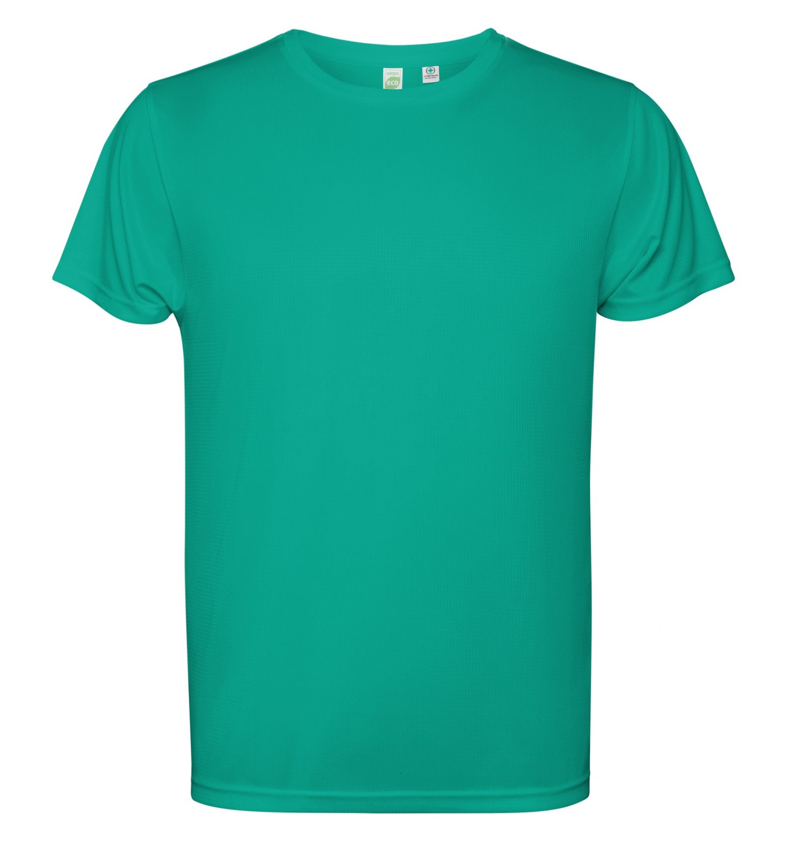 Tricou tehnic cu mânecă scurtă. Guler cu cusături în aceeași culoare.