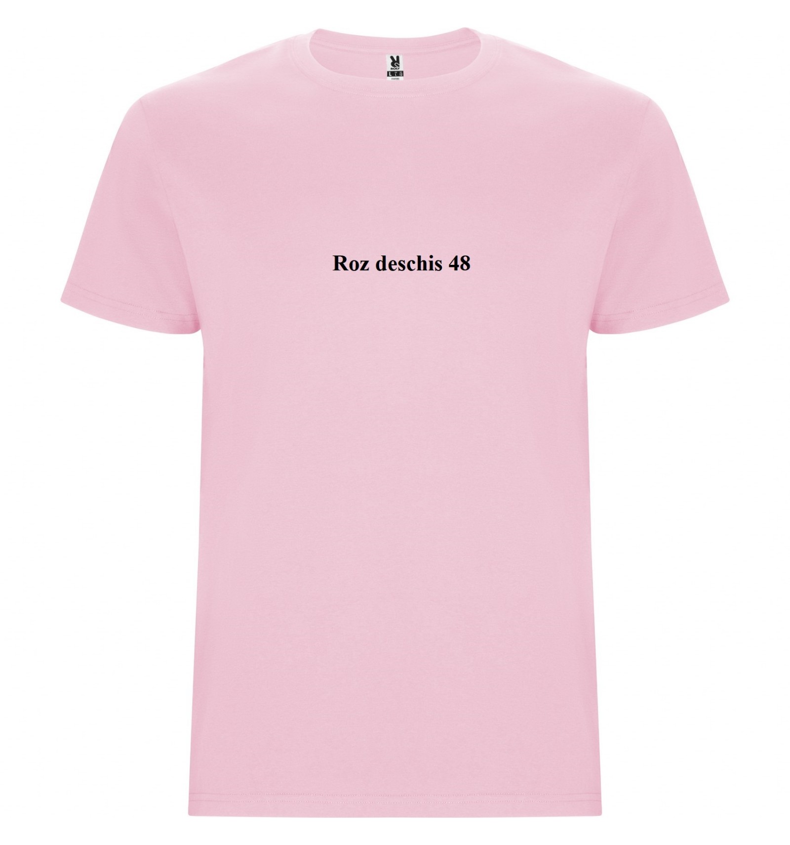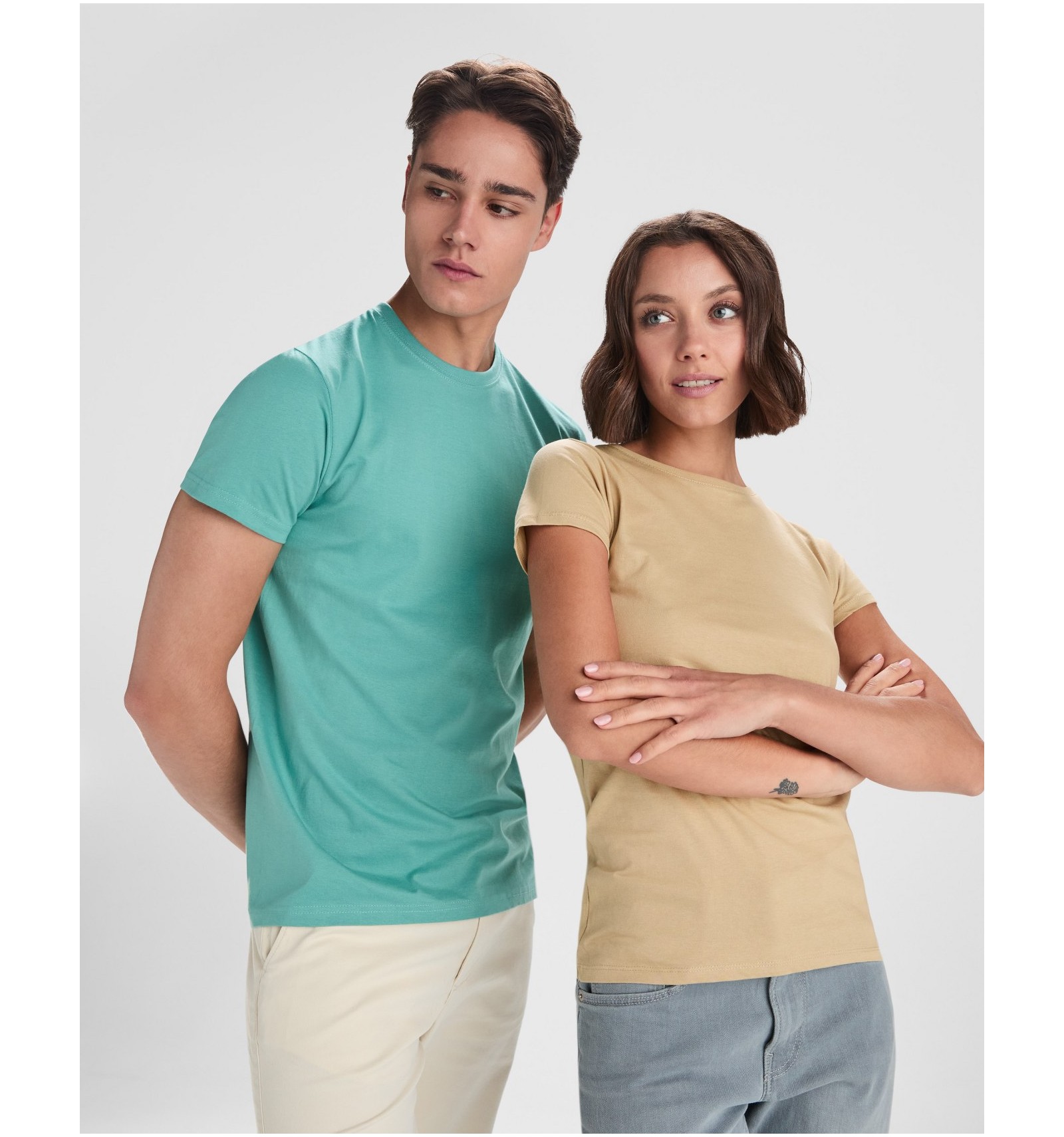Tricou tubular cu mânecă scurtă. Guler rotund cu elastan. Cusături laterale la mărimile de copii.